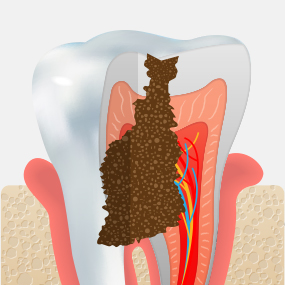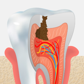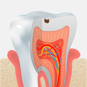 법랑질 안쪽에 있는 상아질까지 충치가 진행되어 뜨겁거나 차가운 음식을 먹으면 시린 증상이 나타납니다.